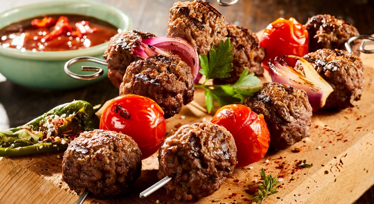 Gedaan2 Rijg de spiesen: Wissel gehaktballetjes af met stukken paprika en ui. Begin en eindig met een groente voor stevigheid.