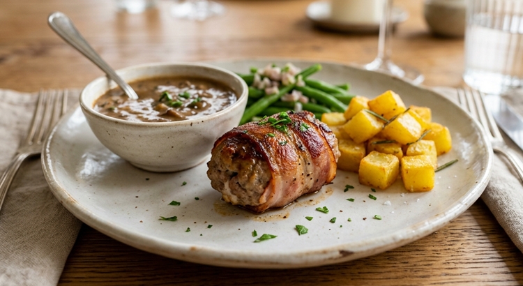 Lekker met: gebakken aardappeltjes of aardappelpuree, verse sperziebonen of broccoli, vergeet niet een stukje vers brood om de jus-saus op te nemen. Serveer de jus-saus apart in een kommetje
