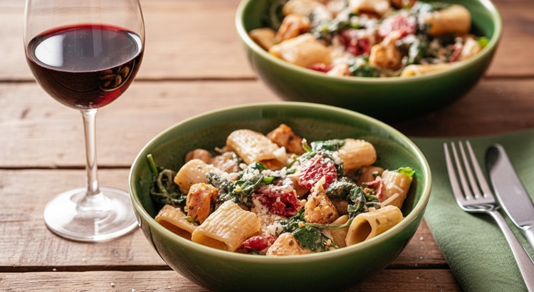 Gedaan6 Roer de kookroom, zongedroogde tomaten en Parmezaanse kaas erdoor en laat het geheel nog enkele minuten zachtjes pruttelen tot de saus mooi romig is en de pasta gaar.
