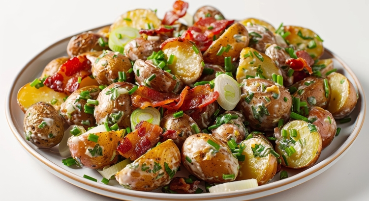 5 Schep de warme aardappelen voorzichtig door de dressing, zodat ze de smaken opnemen.